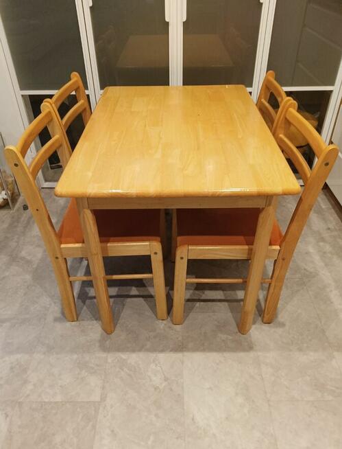 Sprzedam drewniany stół z czterema krzesłami (komplet). Zestaw kupiłem 10 lat temu w sklepie Jysk. Stół jest stabilny i ...